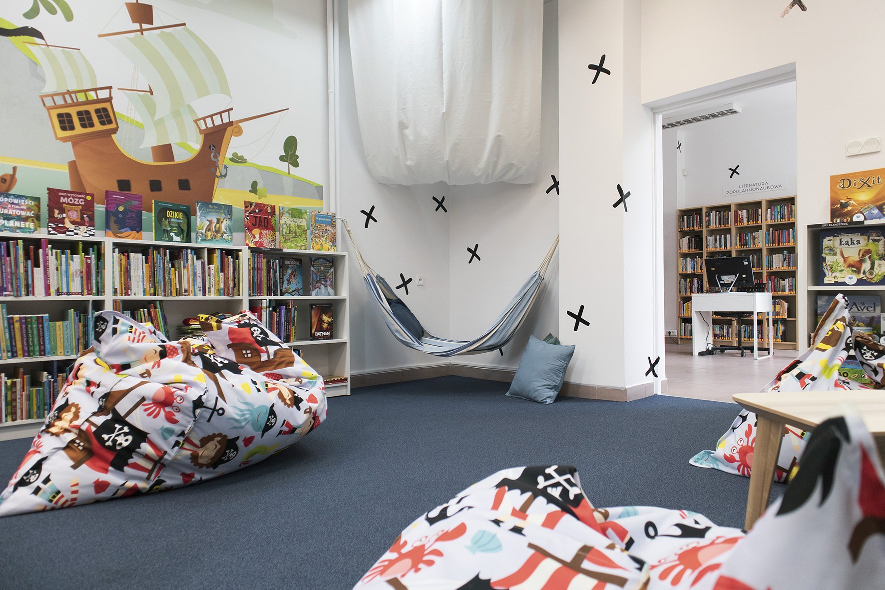 Wydzielona strefa dla najmłodszych z ogromnym statkiem pirackim na ścianie zachęca do odkrywania świata i przeżywania przygód, także tych czytelniczych. Szereg atrakcji czeka już na młodzież w pierwszych dniach po otwarciu. Zapraszamy do zabawy „Ahoj przygodo!”, a w niej gra w statki „TRAFiony zatopiony”, memory „TRAF do pary”, warsztaty plastyczne, na których zrobimy papierowe statki i morskie stworzenia. Zajęcia edukacyjne, warsztaty i atrakcje dla dzieci i młodzieży będą stałym elementem wydarzeń w TRAFie.
