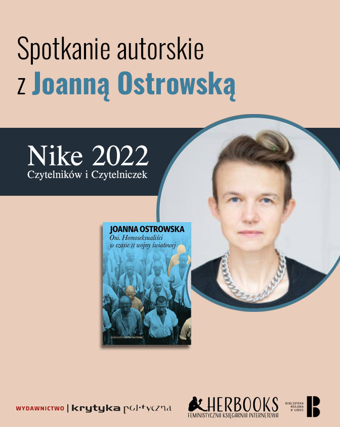 07/11/2022We współpracy z Herbooks.pl - Feministyczna Księgarnia Internetowa oraz Wydawnictwem Krytyka Polityczna, Biblioteka WOLNOŚĆ zaprasza na spotkanie z Joanną Ostrowską, autorką książki "Oni. Homoseksualiści w czasie II wojny światowej", laureatką tegorocznej Nagrody Nike Czytelniczek i Czytelników.