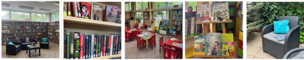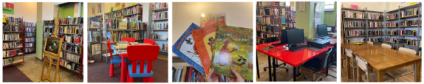 Dla czytelników i czytelniczek dostępne są oddzielne wypożyczalnie dla dorosłych i dzieci oraz szeroki wybór książek dla każdego.