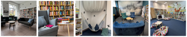 Chciałbyś spędzić czas na przytulnym patio, w otoczeniu zieleni i kwiatów, z dobrą książką w ręku? W filii 72, przy ul. Kadłubka możesz to zrobić. Przestrzeń z fotelami to idealne miejsce na relaks i odpoczynek po pracy lub nauce.