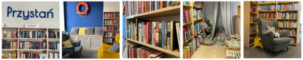 W Przystani możesz zatrzymać się na chwilę i odpocząć wśród książek czy poczytać w fotelu.